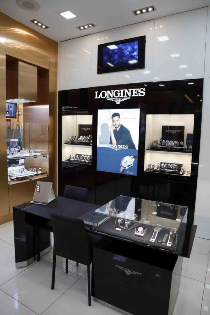 La personalidad de LONGINES se ve reflejada en este sorprendente espacio, poniendo en alto sus valores fundamentales: rendimiento, precisión y establecimiento de nuevos estándares; su espectacular diseño y arquitectura combina un diseño moderno en donde el protagonista es cada pieza.