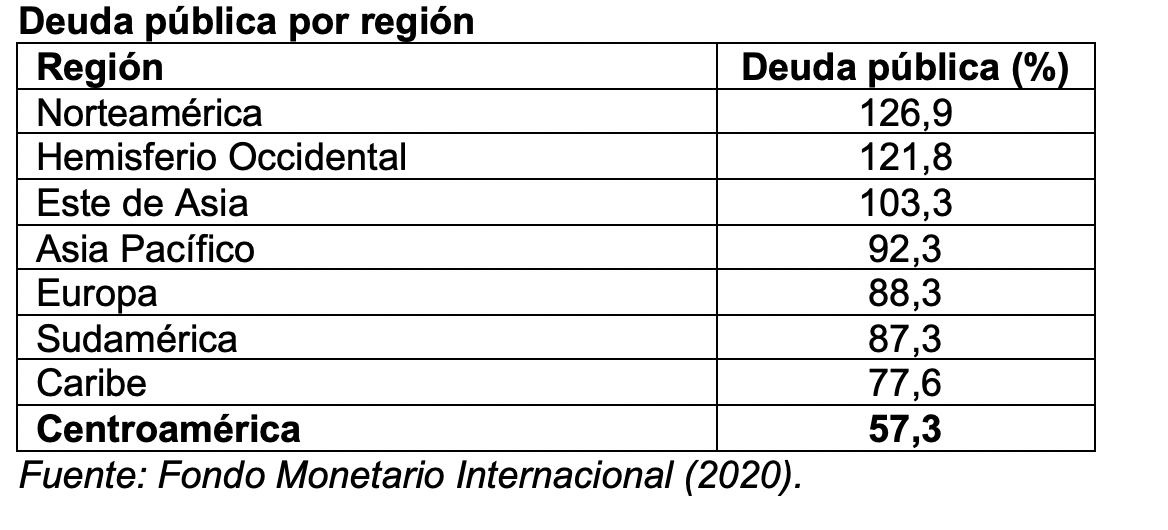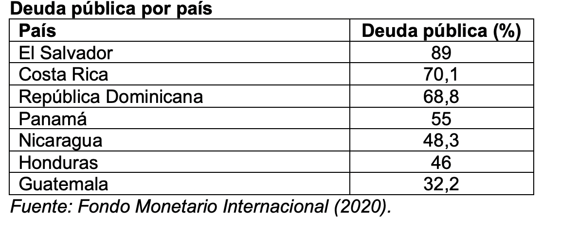 Con un 89% del producto interno bruto salvadoreño y un 70,1% del PIB costarricense, las previsiones de la deuda pública centroamericana del Fondo Monetario Internacional para el 2020 distan mucho de las de naciones desarrolladas como Japón (266,2%); Estados Unidos (131,2%) y el Reino Unido (108%).