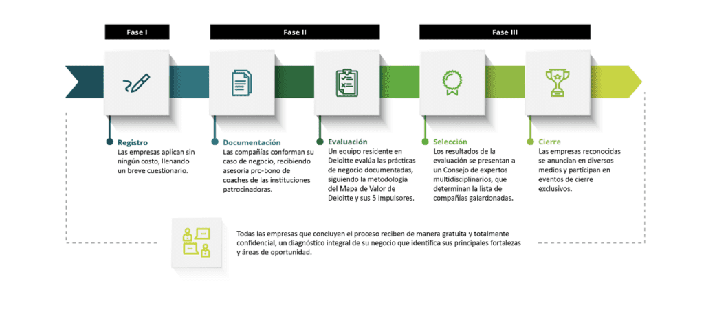 La tercera edición del programa tuvo 134 empresas registradas; de ellas, 81 continuaron a la fase de documentación, en la que trabajaron su caso de negocio bajo la metodología del programa, basada en los 5 impulsores del Mapa de Valor de Deloitte y sus 36 dimensiones de gestión.