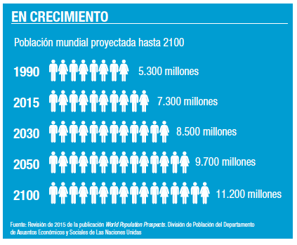 Pilar Santacoloma, oficial de Sistemas Agroalimentarios de la FAO, comenta que el aumento poblacional trae consigo el incremento en la demanda de alimentos, al igual que con el incremento de los ingresos se genera una mayor demanda de productos de origen animal, que requieren más insumos: agua, suelo, capital y conocimientos, para su producción.