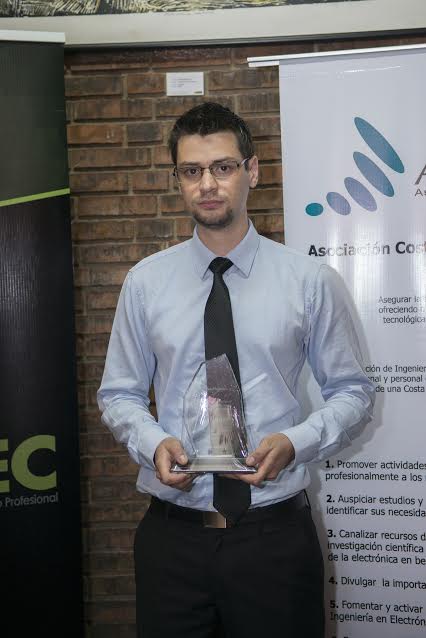 Con una presentación dinámica y mucha seguridad, Eduardo José Asenjo, estudiante del Instituto Tecnológico de Costa Rica, se convirtió en el ganador del Premio Nacional de Electrónica 2016 en la categoría estudiantil entregado por la Asociación Costarricense de Ingeniería Electrónica (AsoElectrónica).