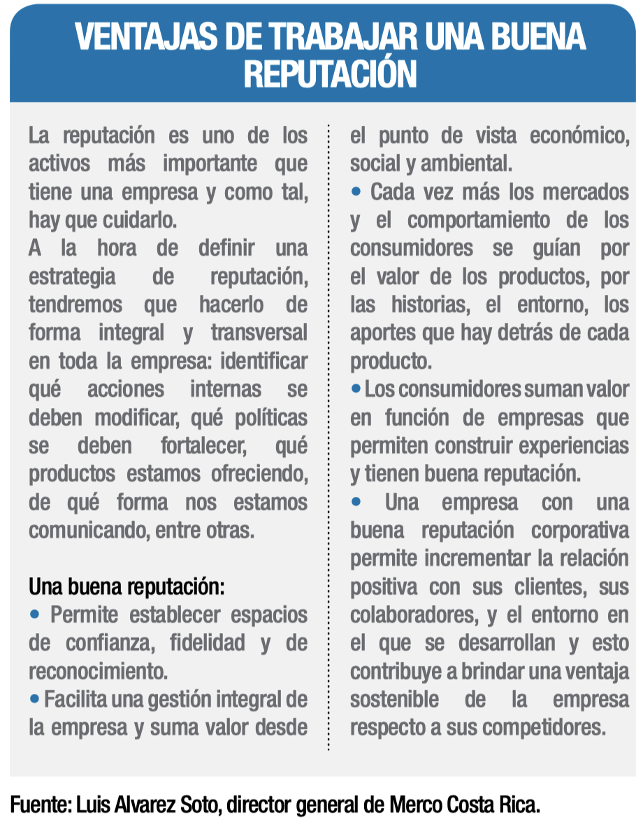 “Es una visión integral, en la que debemos comprender que cada vez más las percepciones que tienen los clientes y los colaboradores de las empresas se construyen a partir de los llamados momentos de la verdad o los comportamientos que tienen las organizaciones en la relación con sus stakeholders. De ahí, que cuidar todos esos cortos o largos espacios de interacción y mensajes que emiten las empresas en todos los ámbitos de su gestión son fundamentales para lograr una buena reputación corporativa”, enfatiza Luis Alvarez Soto, director general de Merco Costa Rica, uno de los monitores empresariales de referencia en el mundo.