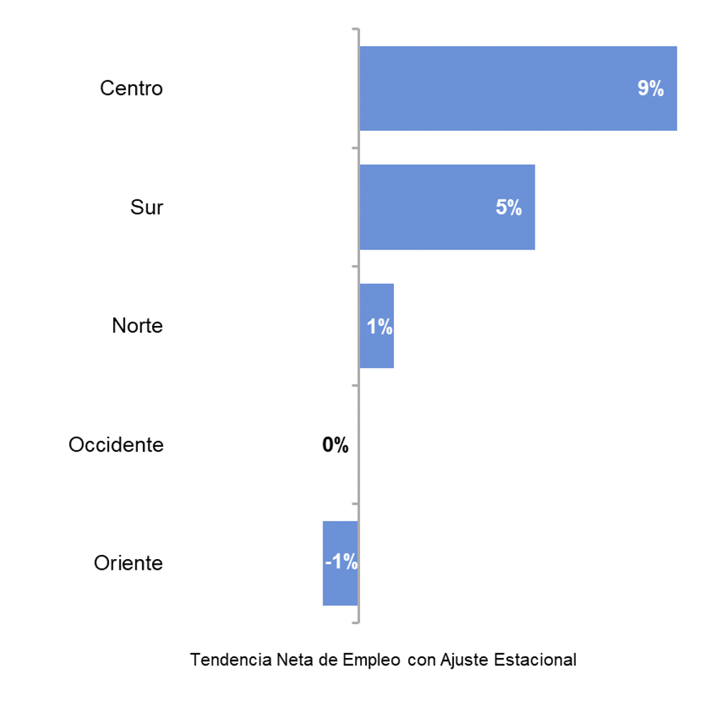 Empleadores en la región Centro reportan el ritmo de contratación más activo, pronosticando una Expectativa Neta de Empleo de +9%
