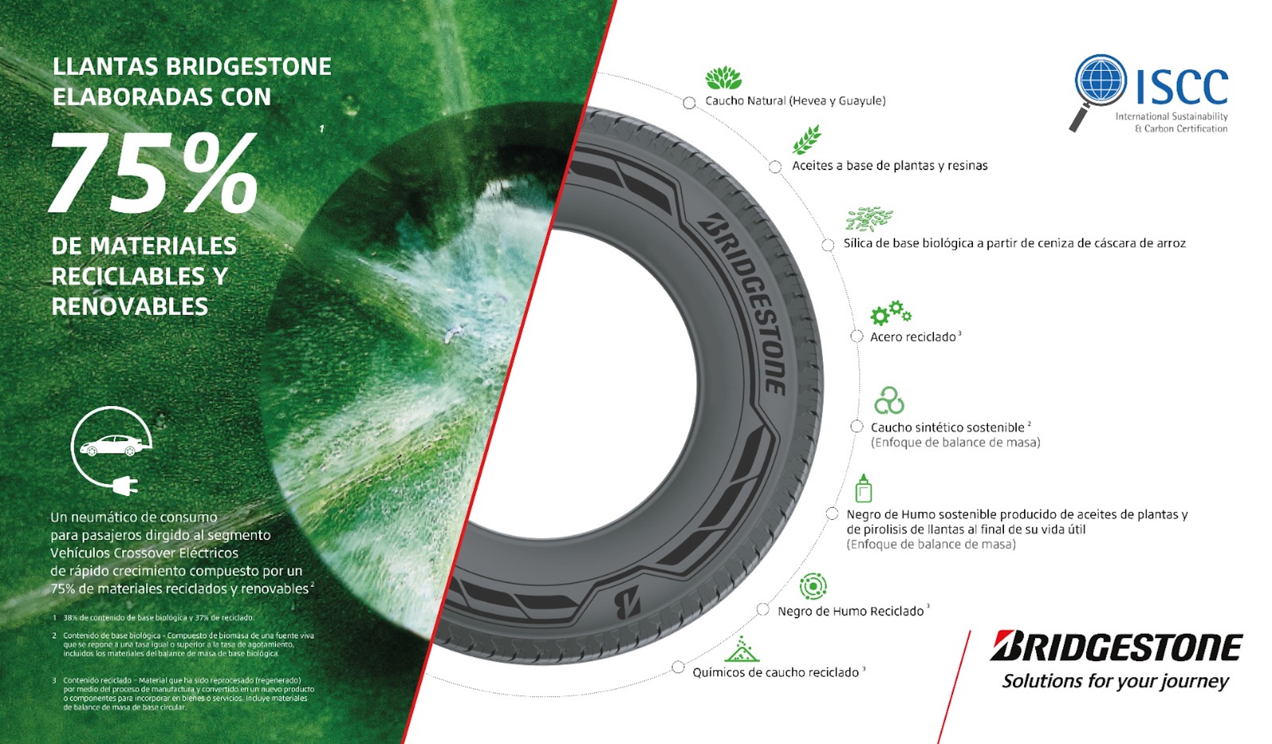 “A medida que progresamos en nuestra transformación hacia una empresa de soluciones sostenibles, estamos haciendo progresos increíbles en el uso de materiales reciclados y renovables para llevar la tecnología de llantas sostenibles desde el tablero de dibujo hasta la calle”, señaló Paolo Ferrari, presidente y CEO de Bridgestone Americas. “La producción y el despliegue de una tecnología de llantas con 75% de materiales reciclados y renovables, marca un hito significativo a medida que aceleramos nuestro progreso hacia el uso de materiales totalmente sostenibles en nuestros productos para 2050”, agregó.