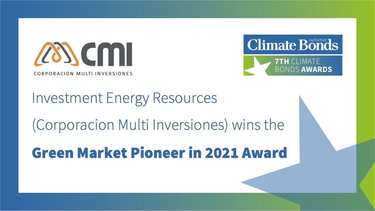 CMI Energía, parte de la Agrupación de Negocios CMI Capital de Corporación Multi Inversiones -CMI-, recibió el premio Green Market Pioneer in 2021 en la séptima edición de los Climate Bonds Awards, por su compromiso e innovación en la industria financiera de energías renovables. Este evento internacional, organizado por Initiative Climate Bonds, premia el liderazgo, las mejores prácticas y la innovación en finanzas verdes y sostenibles.