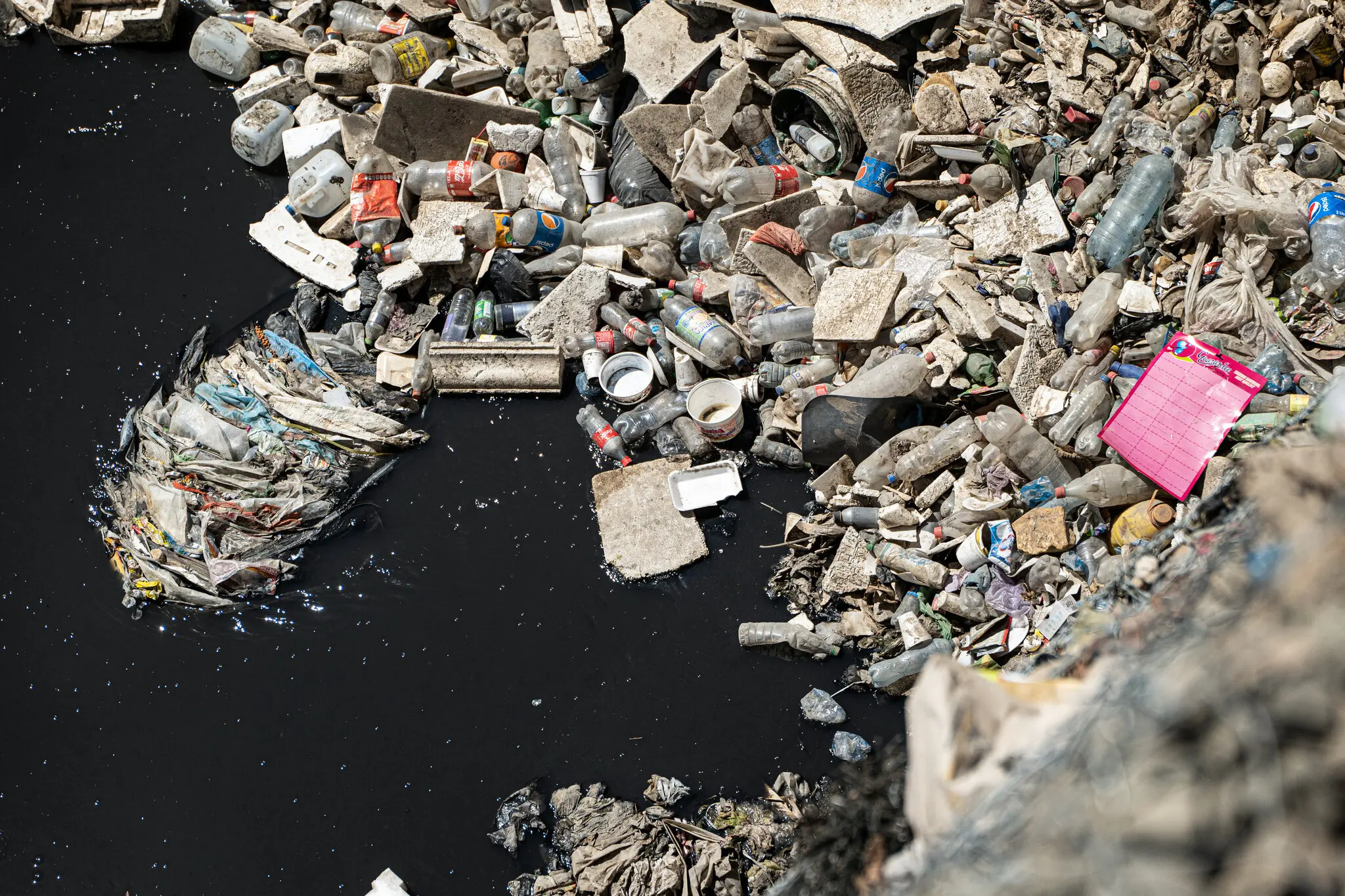 Contaminación por plásticos en el río Las Vacas, en Guatemala. Créditos The Ocean Cleanup.