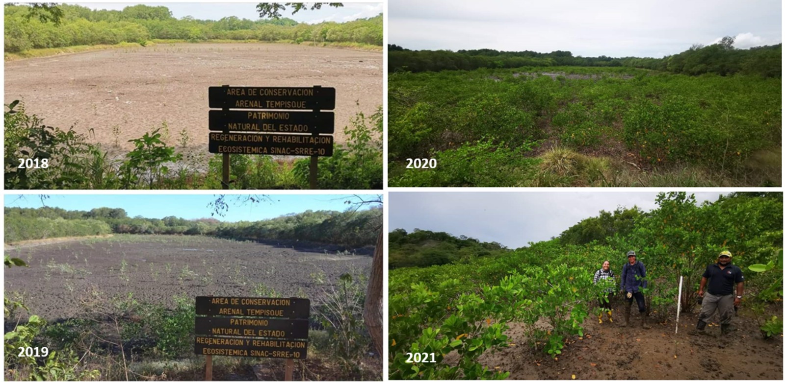 El proyecto de restauración y conservación de manglares en el Refugio Nacional de Vida Silvestre Cipancí, ubicado en Guanacaste, ha recuperado la tierra a través de la apertura de canales y el derribo de muros permitiendo a la vez, la entrada de las mareas y el crecimiento natural de nuevas plántulas de manglar.