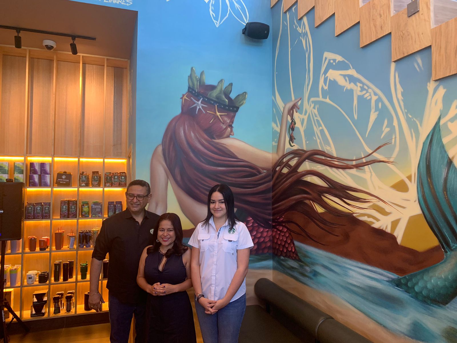 En Starbucks Surf City, los clientes se sumergirán en un auténtico paraíso costero. La decoración, inspirada en el mar, transforma cada rincón en un oasis. Al ingresar a las instalaciones los clientes serán recibidos con un mural de una majestuosa sirena, obra del artista plástico salvadoreño Madjer Linares, el ambiente cuenta con elementos únicos como las luminarias artesanales que cuelgan del techo y unas tablas decorativas también a manos de salvadoreños que invita a relajarse y disfrutar de un momento único.