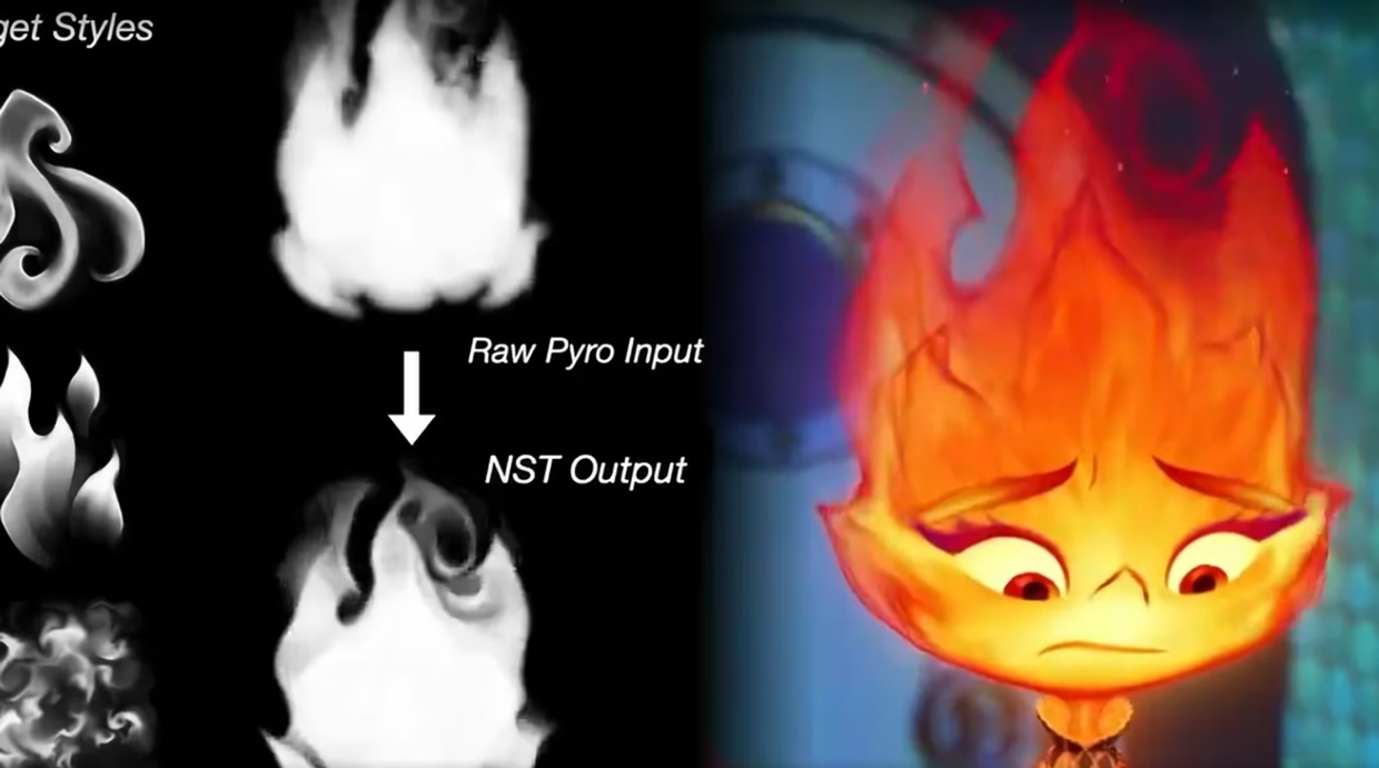 “Una vez que aplicas una transferencia de estilo al fuego natural, puedes entonces empezar a darle dirección a ese estilo y empezar a incorporar el sello del artista a algo que, de otro modo, no se puede tocar”, aseguró Jeremie Talbot, co-supervisor de personajes del estudio.