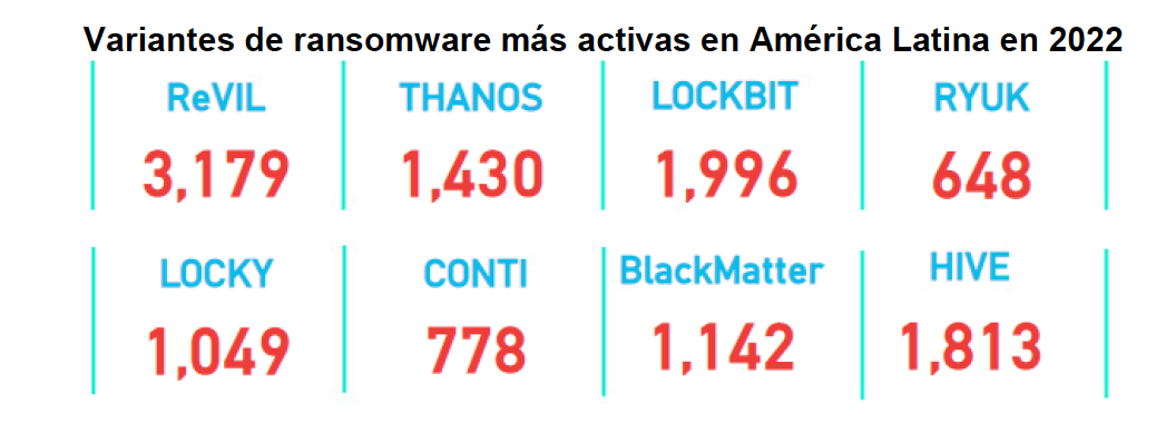 Las campañas de ransomware más activas en la región durante el primer semestre de 2022 fueron Revil, detectada principalmente en territorio mexicano, seguida de LockBit y Hive. Conti ransomware, por su parte, ha sido uno de los más populares en los medios debido al alto impacto que ha tenido recientemente en Costa Rica.