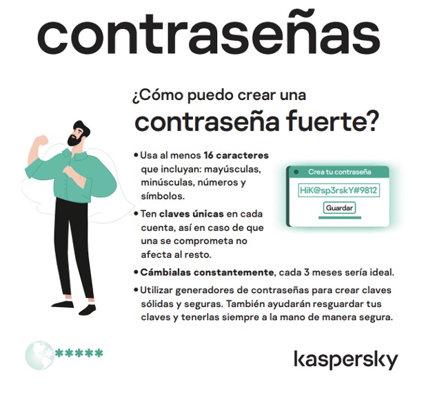 Si se vio identificado en una de las situaciones mencionadas, ¡es momento de renovar su contraseña! A continuación, Kaspersky le comparte una sencilla guía para crear claves únicas y fuertes: