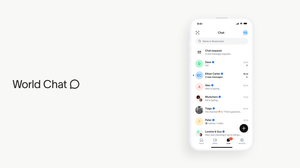 - Mensajería entre humanos verificados: Burbujas azules y grises indican si un contacto es un humano verificado a través de World ID.