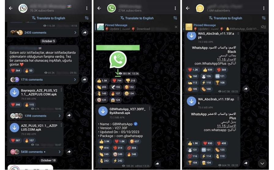 Esta versión maliciosa se ha propagado a través de canales populares de Telegram, apuntando principalmente a hablantes de árabe y azerí, con algunos de estos canales contando con casi dos millones de suscriptores. Los investigadores de Kaspersky alertaron a Telegram sobre el problema. La telemetría de Kaspersky identificó más de 340 000 ataques que involucran a esta modificación solo en octubre. Esta amenaza surgió relativamente recientemente, volviéndose activa a mediados de agosto de 2023.