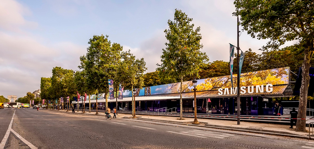 Samsung ha vuelto a colaborar con el galardonado arquitecto Jean Nouvel, quien también diseñó la fachada del Espacio Olympic™ rendezvous @ Samsung | Champs-Élysées 125, en el nuevo emplazamiento de Carré Marigny, que se extiende desde los famosos Champs-Élysées hasta la Place de la Concorde. Ubicado cerca de algunos de los lugares más emblemáticos de París y del estadio abierto donde se llevarán a cabo las tan esperadas competencias de skateboarding y break, el espacio cuenta con una llamativa fachada de vidrio que utiliza colores y ángulos para despertar la curiosidad de los visitantes y darles una idea del espacio abierto con un ambiente lleno de luz en el que podrán disfrutar de la experiencia pop-up más inmersiva de Samsung hasta el momento. La fachada multimedia también mostrará imágenes de atletas de todo el mundo para celebrar el poder unificador del deporte con Samsung Galaxy.