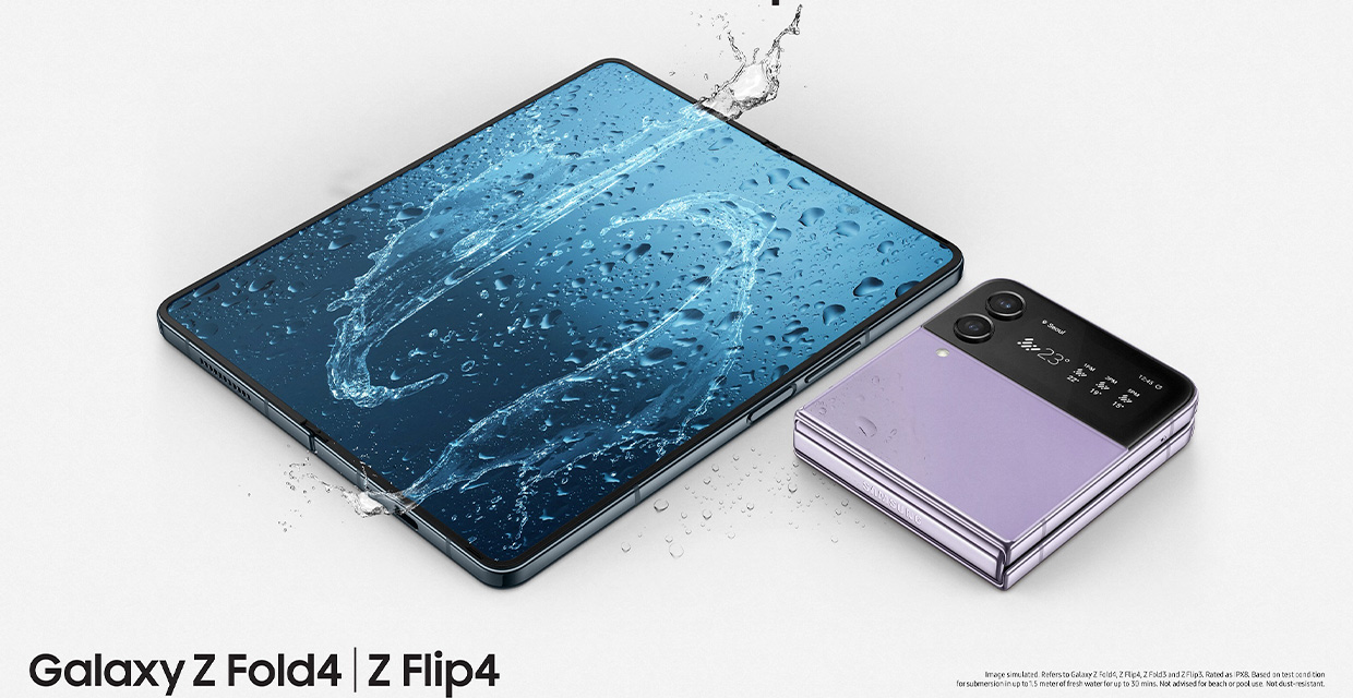 Samsung sigue con su trayectoria de innovación que desafía las barreras para ofrecer el nivel de durabilidad esperado por los consumidores, tanto por dentro como por fuera. Con nuestros marcos Armor Aluminium y la cubierta de las bisagras junto con el exclusivo Corning® Gorilla® Glass Victus®+ en la Pantalla de Cubierta y el vidrio trasero, el Z Flip4 y el Z Fold4 son nuestros plegables más resistentes. La durabilidad del panel de la Pantalla Principal también se mejora gracias a la estructura de capas optimizada, lo que ayuda a reducir los daños causados por golpes externos. Además, tanto el Z Flip4 como el Z Fold4 son equipados con resistencia al agua IPX8, por lo que los usuarios pueden preocuparse menos si se quedan atrapados bajo la lluvia.