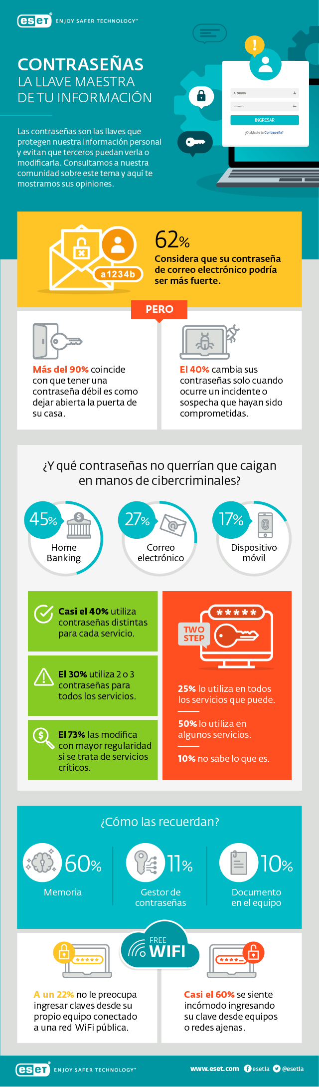 Una encuesta realizada por ESET a usuarios de Latinoamérica revela los hábitos en relación al uso de contraseñas, llaves la información online