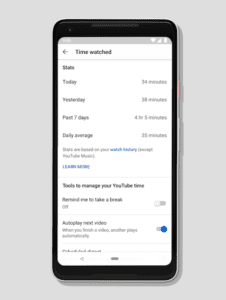 7. Analice su tiempo en YouTube. Si le gustan los videos, a veces puedes terminar en medio de un maratón de reproducción (admitirlo es el primer paso para romper el hábito). ¿No está seguro? Averigue en su perfil el tiempo que ha dedicado a ver YouTube, así: en su móvil, vaya a su cuenta, luego haz clic en Time Watched y averigue el tiempo visto hoy, ayer, la semana pasada y en promedio diario. Nuevamente, establezca metas inteligentes para reducir ese tiempo.