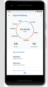 1.Entienda sus hábitos. Desde Google Play Store, descargá la app de Bienestar Digital de Google (debe tener un Pixel o Android 9 Pie en su dispositivo para usarlo). Este tablero le dirá cómo usa cada aplicación en su teléfono a diario: desde cuántas veces la desbloquea hasta cuántos minutos ha pasado mirándola, así como qué apps y con qué porcentaje consumen su tiempo en línea.