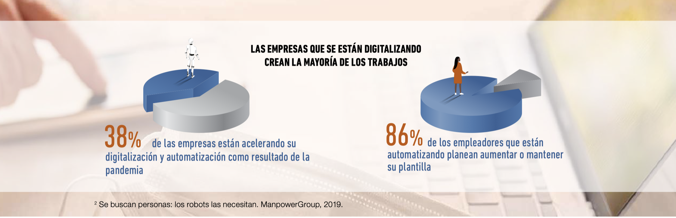 El reporte señala que las grandes organizaciones (de más de 250 empleados) planean digitalizar más y también están contratando a la mayoría de los candidatos, es decir, que abren muchas más oportunidades de empleo. Por el contrario, las organizaciones más pequeñas han sido las más afectadas por la pandemia.