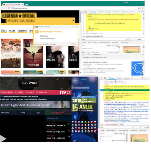 4. Miners en sitios de Streaming: la fiebre por las criptomonedas, es un fenómeno en crecimiento al cual no están ajenos los sitios de streaming de deportes y también de películas. Entre los resultados de la búsqueda inicial en Google se encontraron sitios con diferentes tipos de mineros: