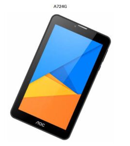 En primer lugar está la tableta AOC A724G, que cuenta con una pantalla táctil de 7 pulgadas, tecnología IPS LCD táctil capacitiva. La resolución es de 1024×600 pixeles en formato 16:9, convirtiéndola en la pantalla ideal para ver videos y películas en el tamaño original sin que la imagen se distorsione.