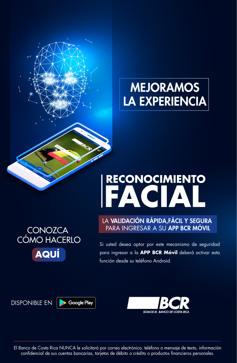 Etiquetas: App BCR Móvil / BANCO DE COSTA RICA / BCR / Biometría Facial / validar transacciones