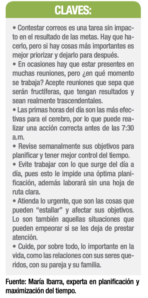 “Nos han vendido la idea de que entre más hacemos somos más productivos, o que entre más rápido hacemos las cosas más eficientes somos y eso está equivocado, son pocas las personas capaces de hacer varias cosas a la vez y hacerlas velozmente”, comenta María Ibarra, experta en planificación y maximización del tiempo.