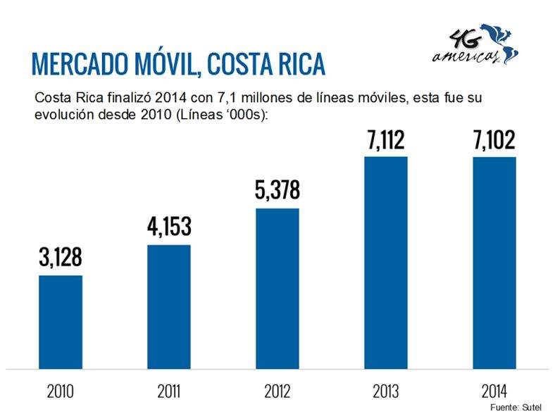 Además, el representante de 4G Americas remarcó que, de acuerdo con datos de la propia Sutel, Costa Rica finalizó 2014 con 7,1 millones de líneas móviles, lo que equivale a una penetración del servicio del 149 por ciento sobre el total de la población del país. En tanto, existen también 4,3 millones de accesos a Internet móvil, que representan casi el 90 por ciento del total de conexiones a Internet, que suman 4,8 millones en el país.
