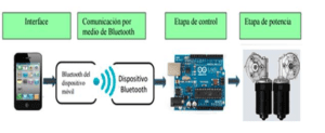 El usuario empleará su teléfono móvil para dar una orden que es un comando de voz, el cual por medio del dispositivo de Bluetooth enviará los datos hasta una tarjeta electrónica digital, es decir, un microcontrolador que es similar a una computadora, el cual es programado para interpretar la señal y poner en funcionamiento los dos motores que movilizarán la silla a diferentes velocidades. Por ejemplo: el usuario podrá solicitar ir a tres diferentes velocidades hacia adelante, atrás, movilizarse hacia la derecha o izquierda y detenerse.