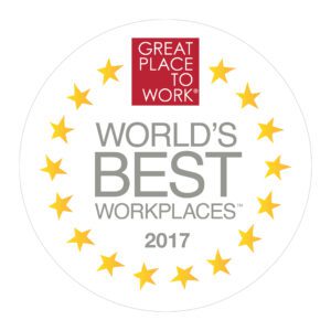 DHL fue reconocido como el octavo mejor lugar para trabajar a nivel mundial en una clasificación de empleadores de 2017 de Great Place to Work y Fortune. Los 25 mejores lugares de trabajo del mundo muestran cómo los principales empleadores a nivel mundial invierten en sus empleados, crean una cultura motivadora e interesante a nivel mundial y brindan oportunidades de desarrollo atractivas para las personas con talento.