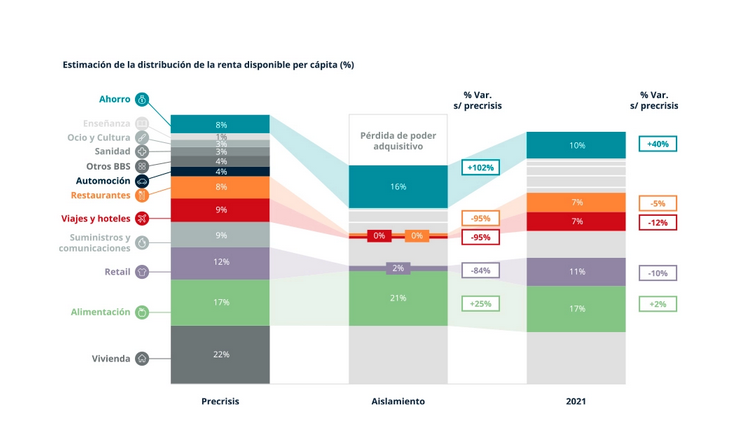 Eso sí, no hay que perder de vista que según el estudio de Deloitte Consulting referenciado al inicio, parece evidente que se va a producir una constricción de renta, tanto por hechos objetivos como subjetivos que va a provocar que las personas consuman menos.