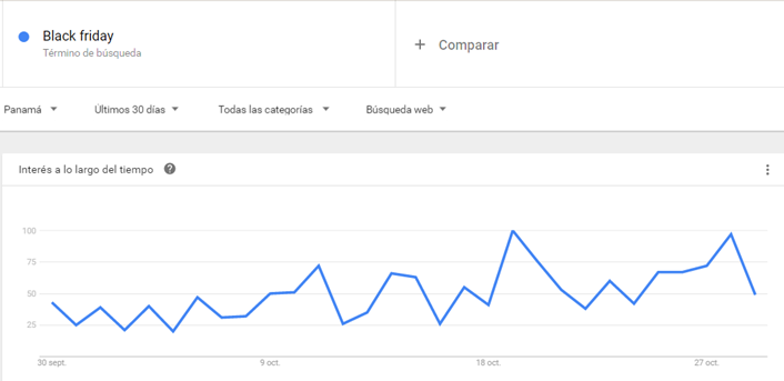 Por su parte, el Black Friday es un tema que entre más cerca está la fecha, su interés va aumentando, como se puede ver en la gráfica.pasted-image-0