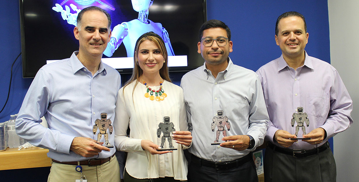 Humberto Sangiovanni, vicepresidente Corporativo Regional de Operaciones Tecnológicas, Vanessa Juárez, jefa del Centro de Robótica, Fernando Fortín, gerente de Operaciones y Allen Soto, vicepresidente de Operaciones y Procesos.