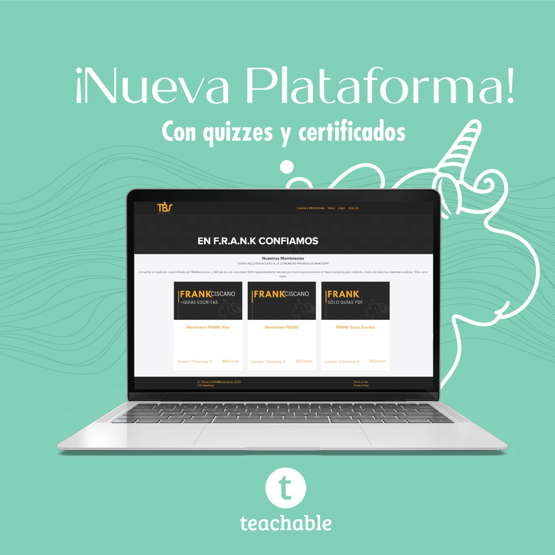 Por medio del sistema F.R.A.N.K., creado y desarrollado en la agencia TBS Marketing, liderada por la experta en mercadeo digital, las personas pueden adquirir dos tipos de membresía que les darán acceso a los materiales, desde videos, clases en vivo, guías escritas y hasta la posibilidad de unirse a un grupo de WhatsApp que sirve como apoyo en el proceso de aprendizaje para la creación de chatbots.