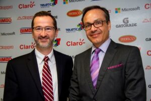 Juan Carlos Rojas, presidente del Deportivo Saprissa y Carlos Flores, director de Microsoft Costa Rica.