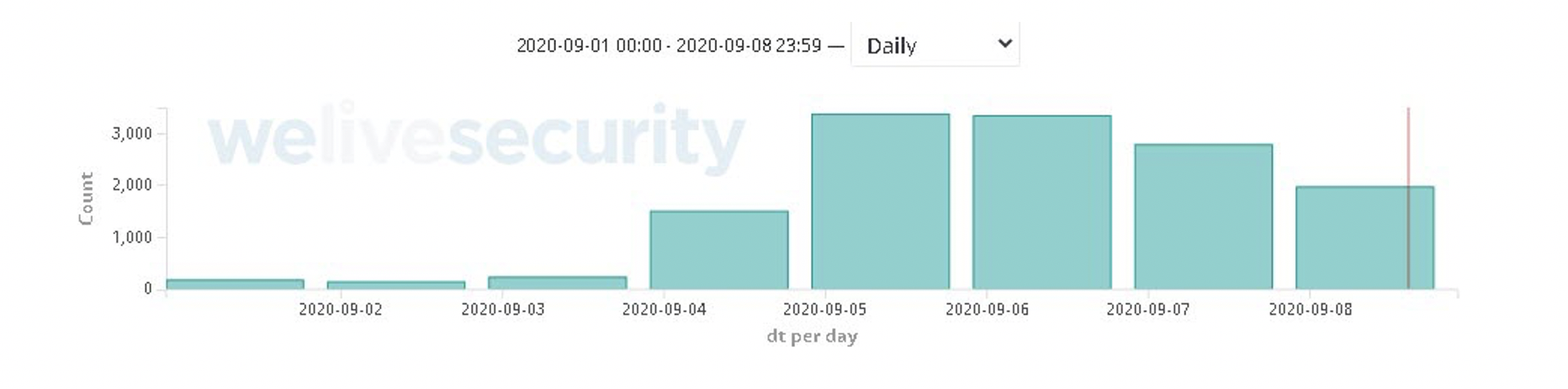 ESET detalla la correlación que existe entre el comportamiento de las detecciones a lo largo de los días y la fecha de lanzamiento de la película.