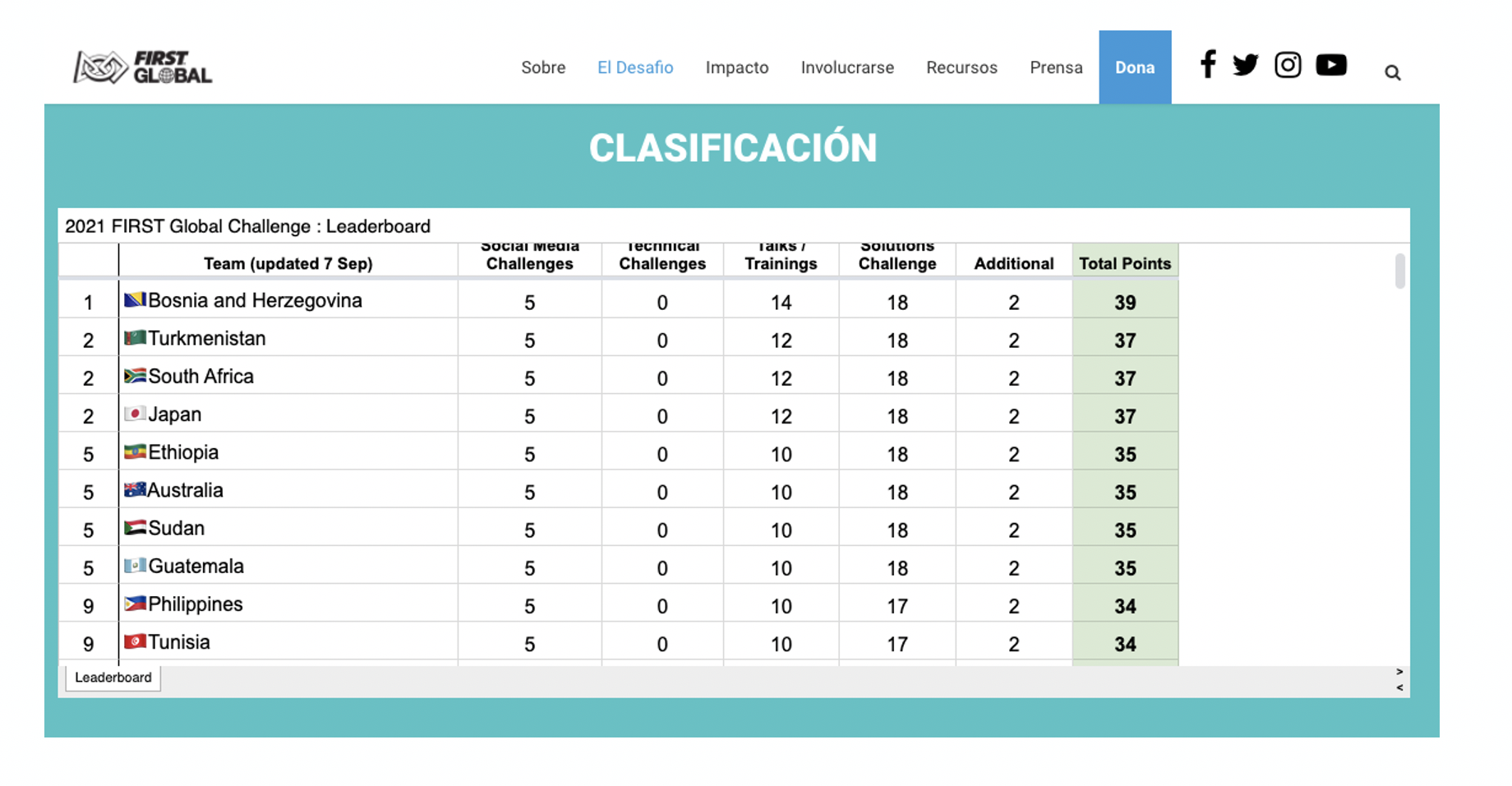 Desde el pasado 27 de junio de 2021 un grupo de 12 jóvenes que conforman la Selección de Guatemala de Robótica ha destacado su participación en la First Global Challenge, competencia de talla mundial que se encuentra en desarrollo, en donde hasta el momento se posicionan entre los primeros 10 puestos de 175 países participantes.
