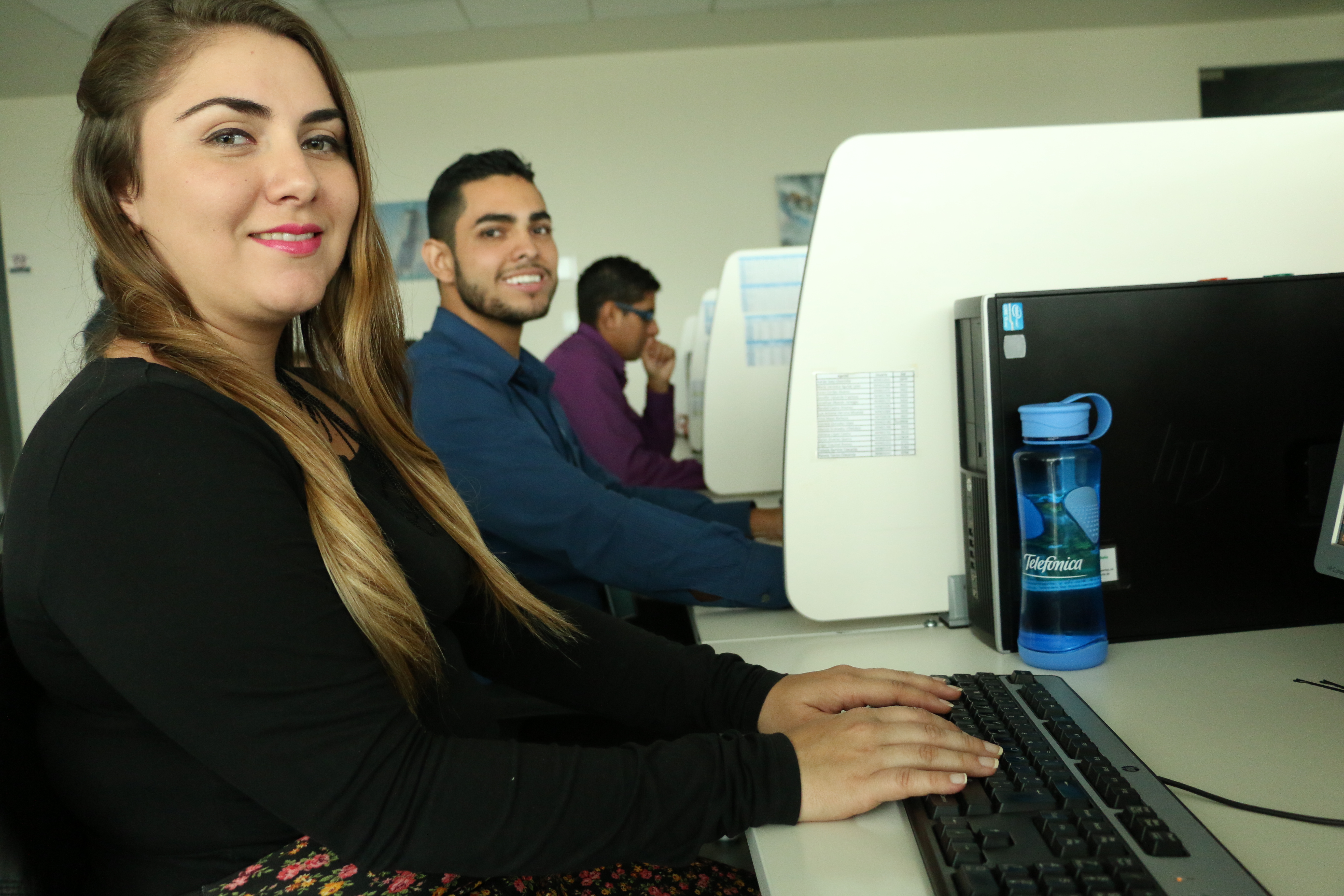 Gloriela Gonzalez y Byron Jimenez, miembros del equipo de atencion del Chat en Línea para clientes empresariales.