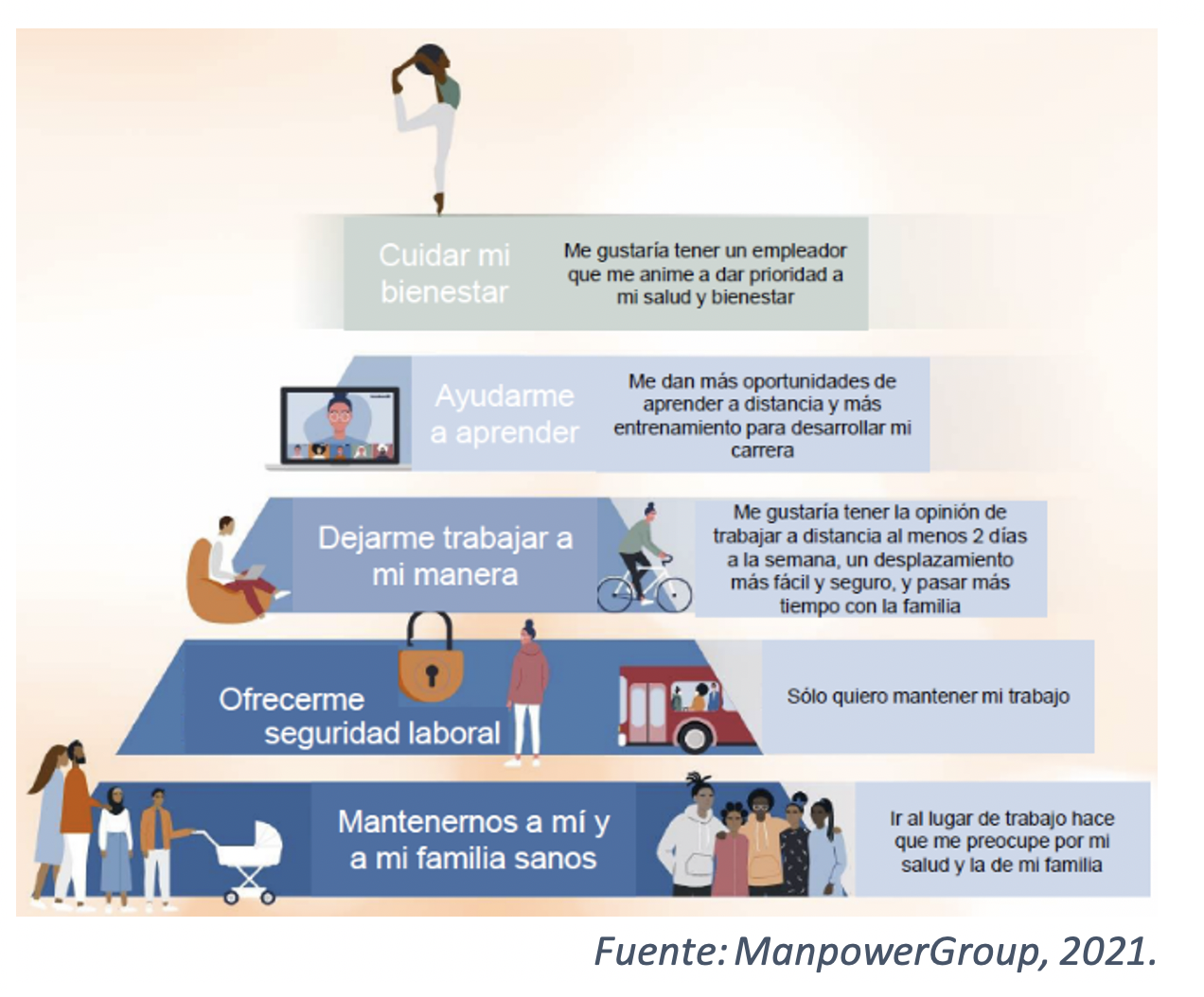 Asimismo, el informe afirma que la pandemia y otras últimas tendencias desencadenan un aumento en la importancia de la elección individual, por lo tanto, se creó una nueva jerarquía de necesidades que reclama mayor flexibilidad y autonomía.