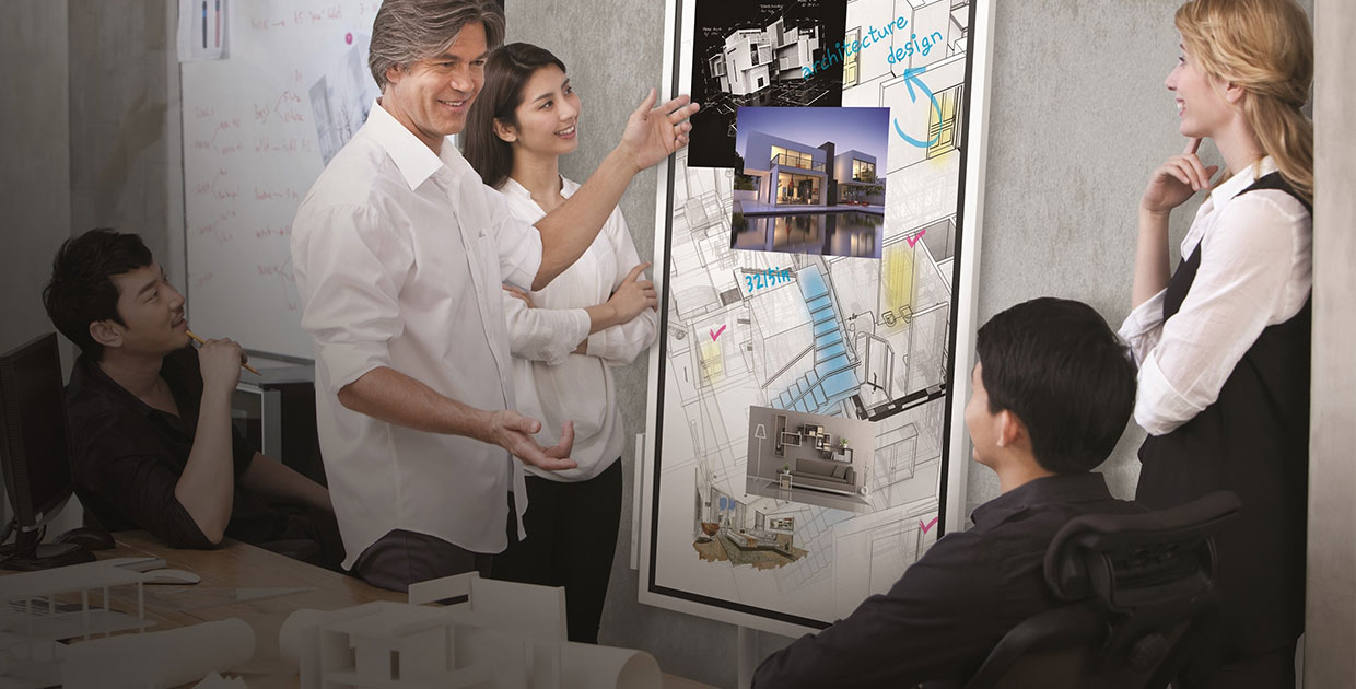 El Samsung Flip es el ejemplo perfecto de cómo elevar la conectividad digital, la creatividad y la colaboración a un nuevo nivel, al transformar la clásica pizarra de papel en una solución digital para las empresas que diseñan espacios de trabajo móviles. Hasta cuatro personas pueden interactuar simultáneamente, usando cualquier objeto como una herramienta de escritura; la funcionalidad táctil permite a todos los miembros del equipo sincronizar sus dispositivos con Samsung Flip para visualizar y controlar el contenido de su dispositivo en tiempo real y al final, los cambios realizados se mostrarán automáticamente en el dispositivo y viceversa, disfrutando así de una experiencia compartida y eficiente.