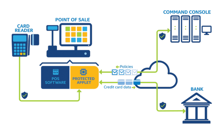 Internet de las Cosas más seguro: Intel y Visa están trabajando juntos para integrar la tecnología de encriptación de Visa con la Tecnología de Protección de Datos de Intel® para Transacciones como una opción para que los comercios puedan transmitir datos de manera más segura. A través de esta colaboración, los datos de pago que se originen en un dispositivo habilitado con encriptación serán transmitidos en un formato que asegurará que no se puedan utilizar si son interceptados por un pirata informático. La tecnología de Protección de Datos para Transacciones de Intel soportará casos de uso en los cuales los datos de la tarjeta se aceptarán por medio de canales no tradicionales de pago tales como computadores, teléfonos móviles y dispositivos conectados a la Internet de las Cosas. Juntos, Visa e Intel esperan implementar usos del chip de Intel como una raíz de confianza en el hardware y construir sobre eso con software de Visa e Intel.1