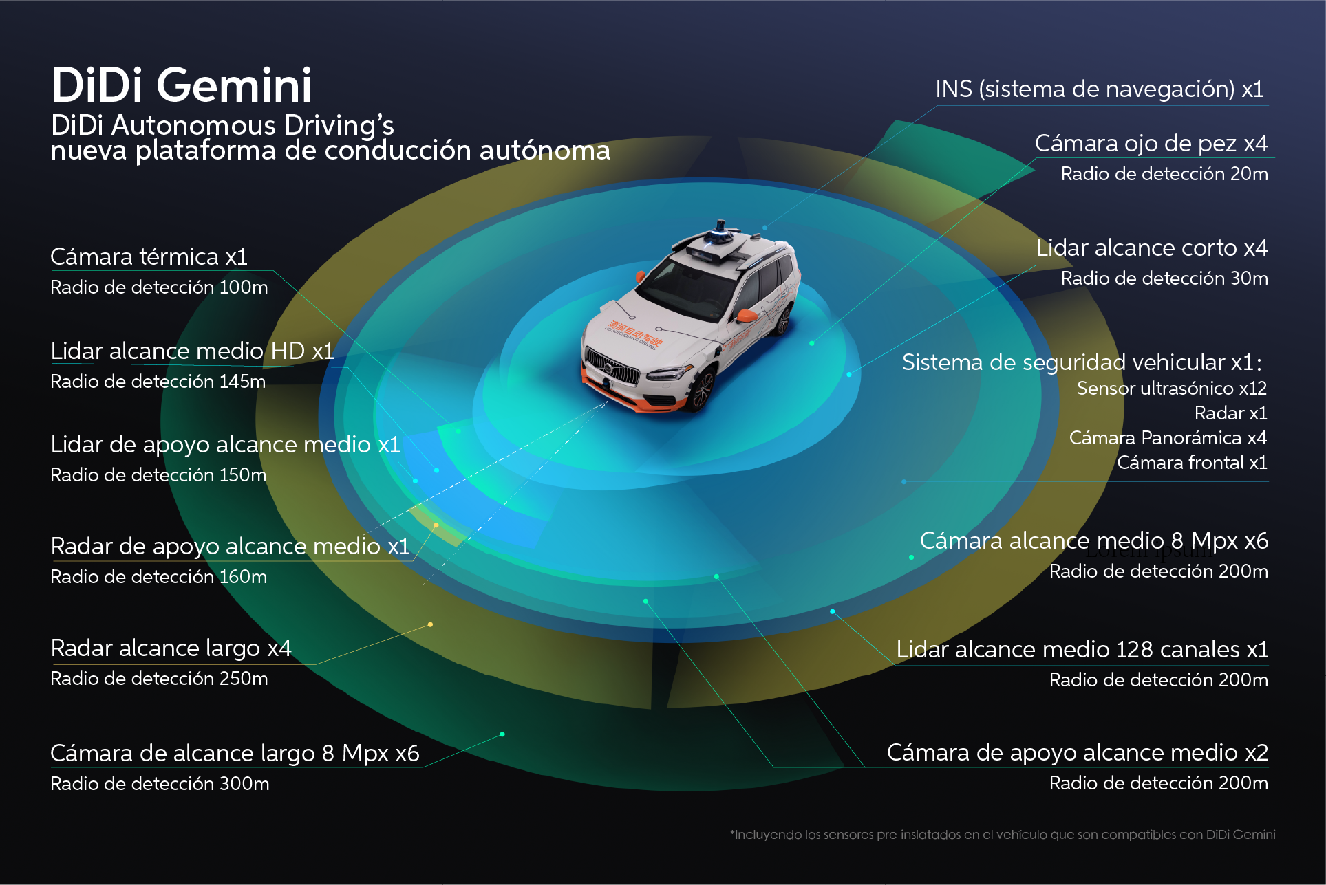 Los automóviles XC90 serán los primeros en integrar DiDi Gemini, la nueva plataforma de hardware de conducción autónoma de DiDi, la cual se planea implementar en viajes dentro de la red de DiDi en el futuro.