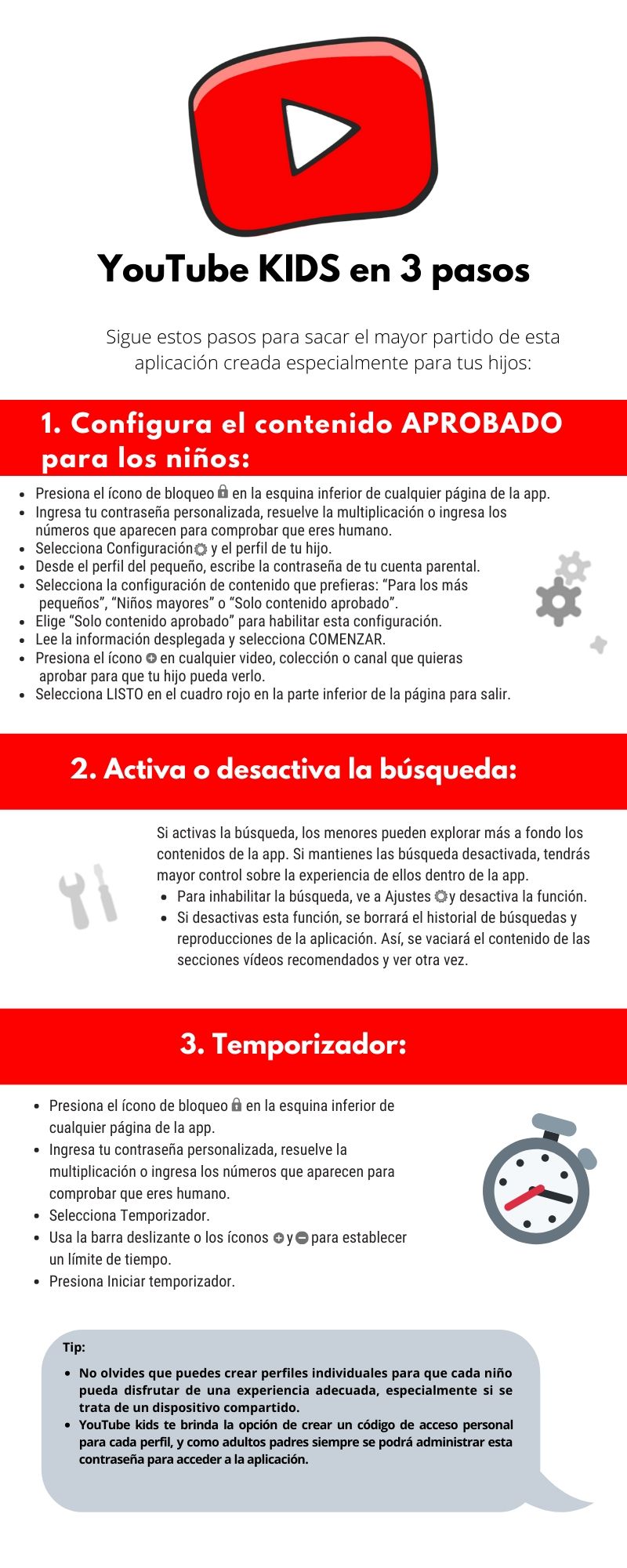 Cómo funciona la app: En primer lugar, descarga la aplicación de YouTube Kids en sistemas operativos Android y iOS. Al abrir la app, puede ver de inmediato cómo nuestros sistemas eligen y recomiendan contenido, así como la forma de reportar videos. YouTube revisa que todos los videos de la app sean de contenido familiar, pero el sistema no es perfecto; así que si se encuentra con un video que le preocupa, por favor, repórtalo. Esto ayuda a que YouTube Kids sea mejor para todos.