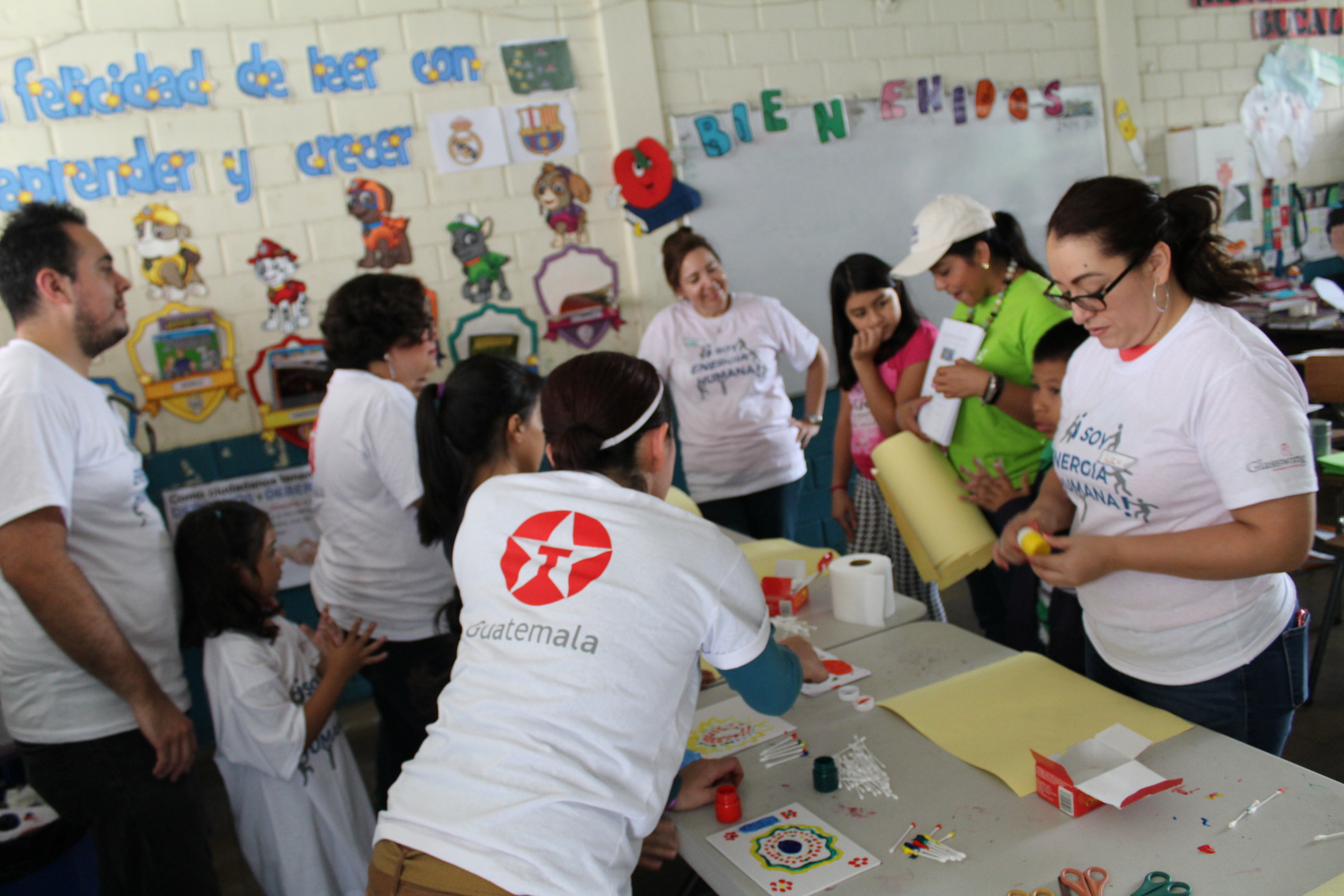 En Guatemala, la actividad se realizó en dos Centros Escolares EORM Aldea El Corozo Milla 5, en Puerto Barrios y Escuela Miguel Vasconcelos en la ciudad de Guatemala. Los voluntarios de Texaco realizaron actividades de limpieza y restauración de las instalaciones, pintura de fachadas e interiores, murales educativos, juegos de piso, rincón de lectura en biblioteca y se repararon los servicios sanitarios.