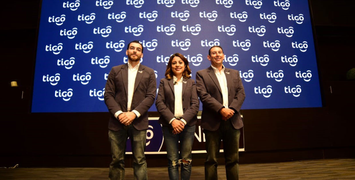 Álvaro Ruata, director comercial de B2C de Tigo, Jamie Moreno, directora de mercadeo de Tigo y Marvin Martínez, Chief B2C de Tigo.