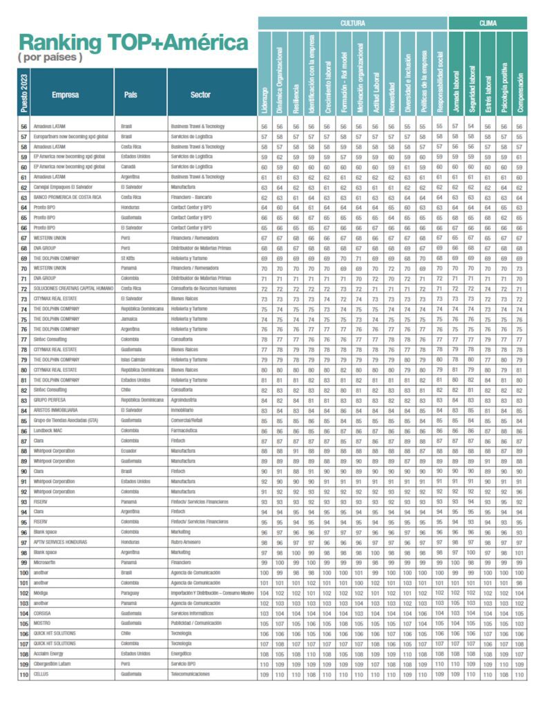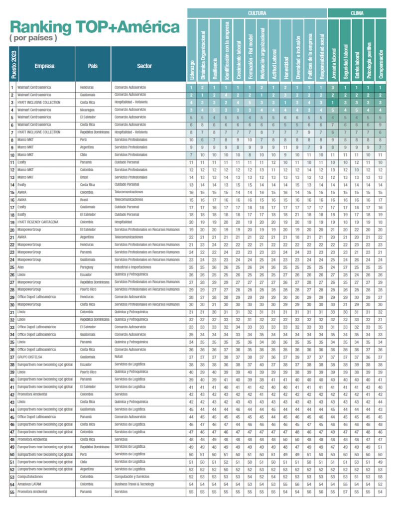El Ranking TOP+América evalúa 12 factores de cultura organizacional como:
