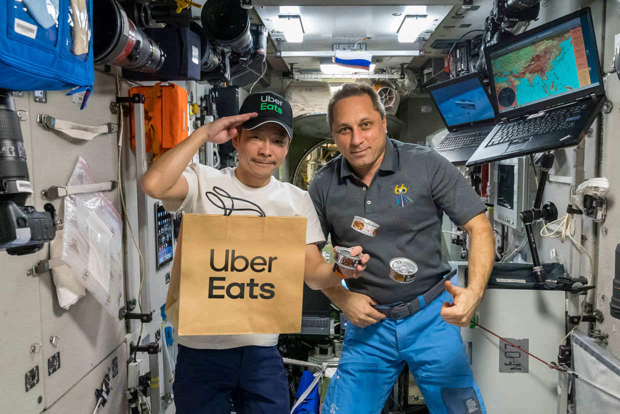 Uber Eats se asoció con el empresario japonés y fan del delivery, Yusaku Maezawa, quien entregó personalmente comida típica japonesa a los astronautas en la Estación Espacial Internacional, como parte de su órbita de 12 días. La entrega llegó el 11 de diciembre de 2021 a las 8:40am EST. La orden recorrió cerca de 400 kilómetros y el viaje duró un total 8 horas y 34 minutos desde la salida de Maezawa de la Tierra.