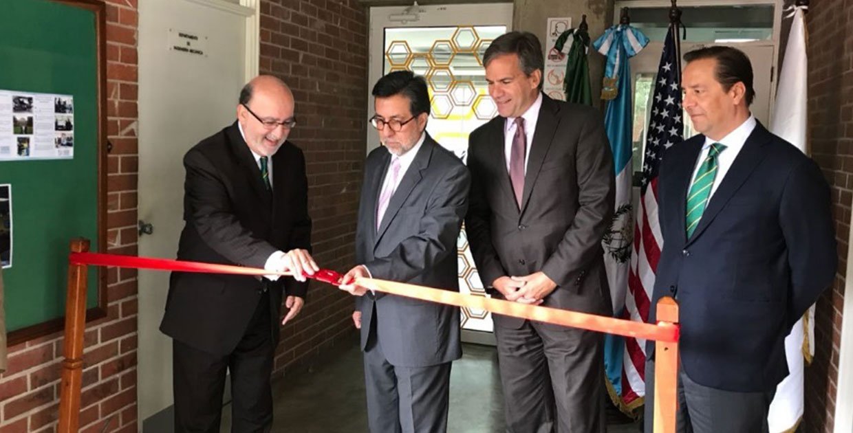 Roberto Moreno, rector UVG,Luis Arteaga, embajador de Estados Unidos, John Beed, director de la Misión USAID y Nicholas Dorion, presidente Fundación UVG.