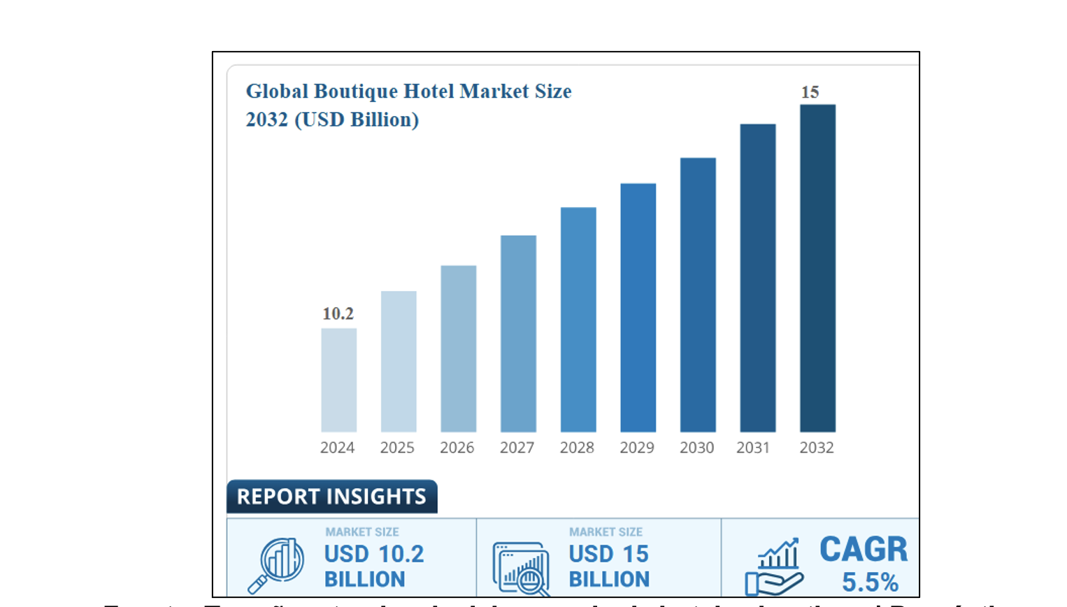 Fuente: Tamaño y tendencia del mercado de hoteles boutique | Pronóstico global 2032