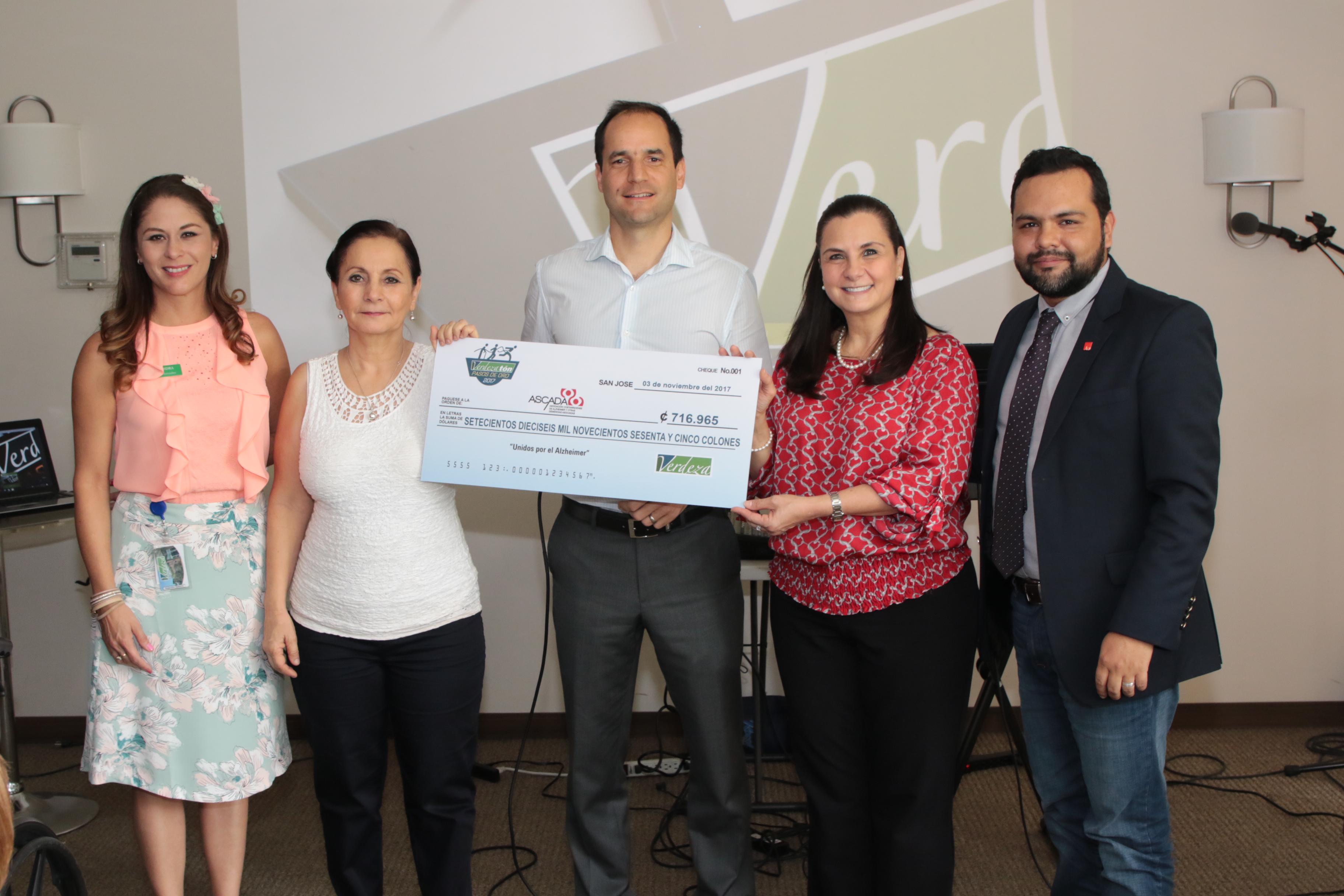 El 3 de noviembre, se realizó la donación oficial de lo recaudado en tal actividad. Martí Jiménez socio director de Verdeza entregó lo recaudado a Jenny Mora, vicepresidenta de Ascada, un total de 716.965 colones.